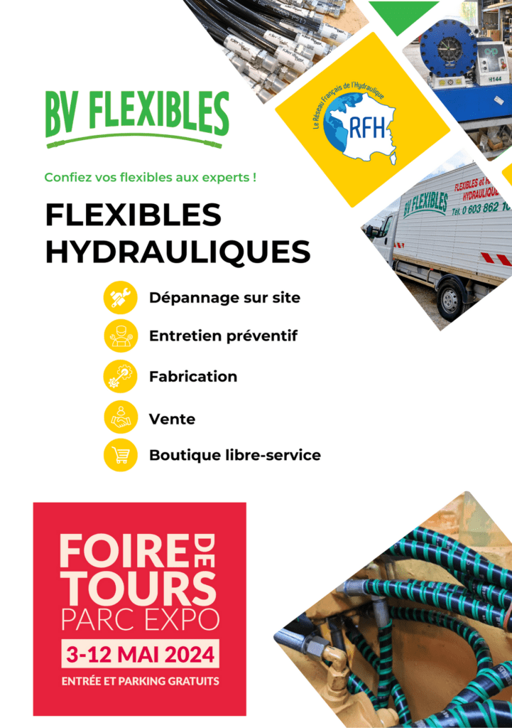 BV FLEXIBLES est votre spécialiste des flexibles hydrauliques en Touraine :